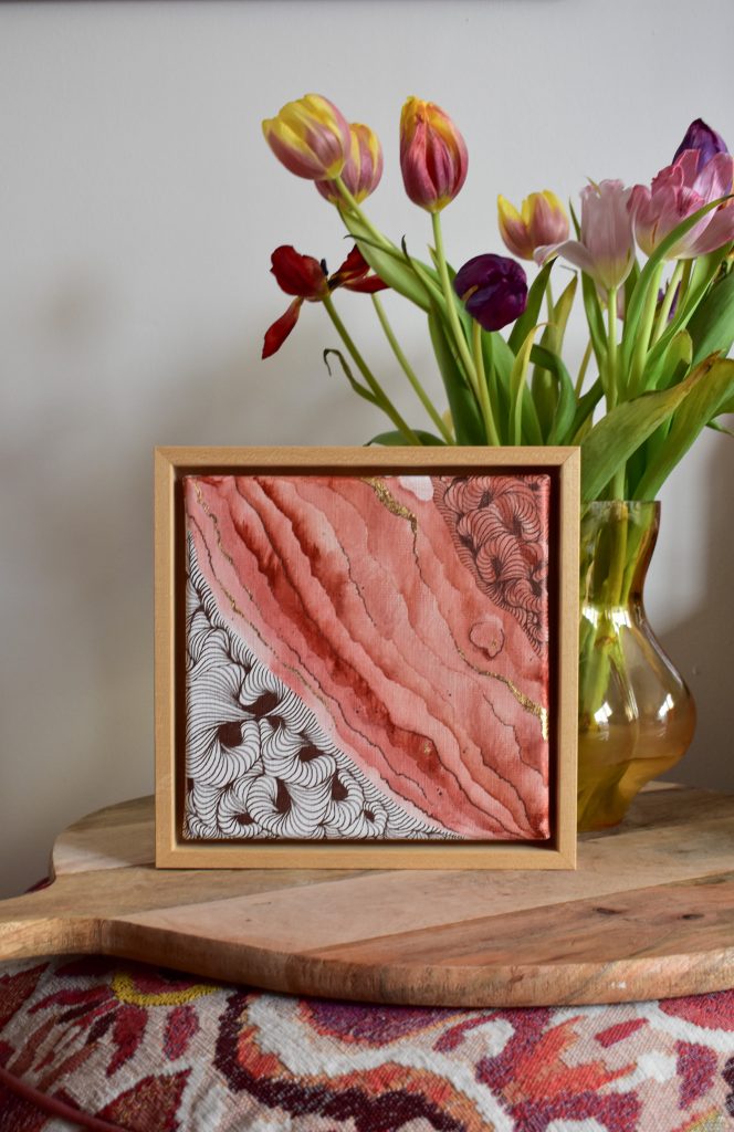 ❤ Origineel werk op doek - materiaal: aquarel, goudfolie en fineliner
